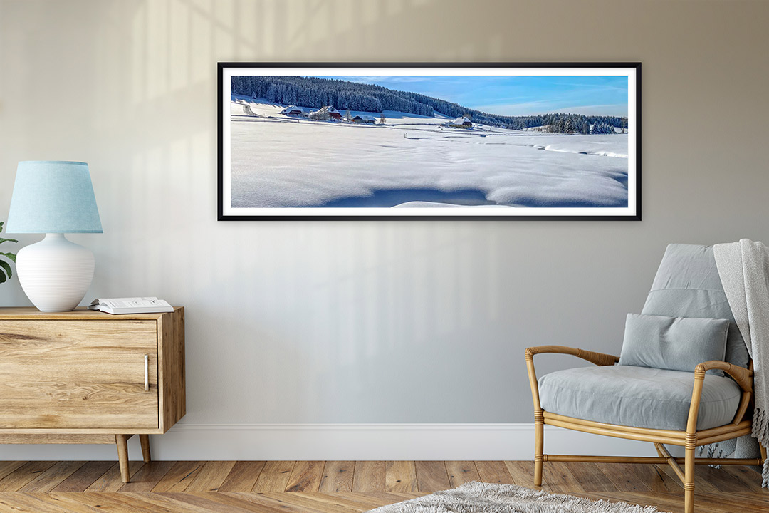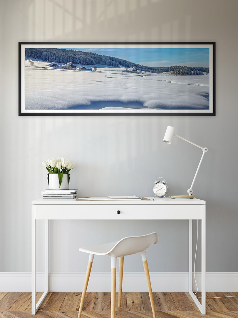 Dieses Panoramafoto gibt es in unterschiedlichen Ausführungen, als Abzug / Poster, auf Leinwand oder ein Abzug im Rahmen mit Passepartout. Bitte wählen Sie Größe und Material.