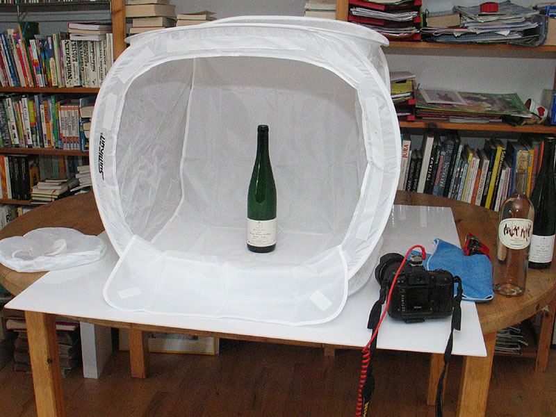 Nachdem ich hier (Aufbau siehe oben) schon einmal beschrieben habe, wie man mit überschaubarem Aufwand zu brauchbaren Produktfotos kommt (am Beispiel von Weinflaschen, aber das gilt natürlich für fast alles, was man in einen Shop stellen oder bei Ebay verkaufen möchte), kommt hier der zweite Teil.
