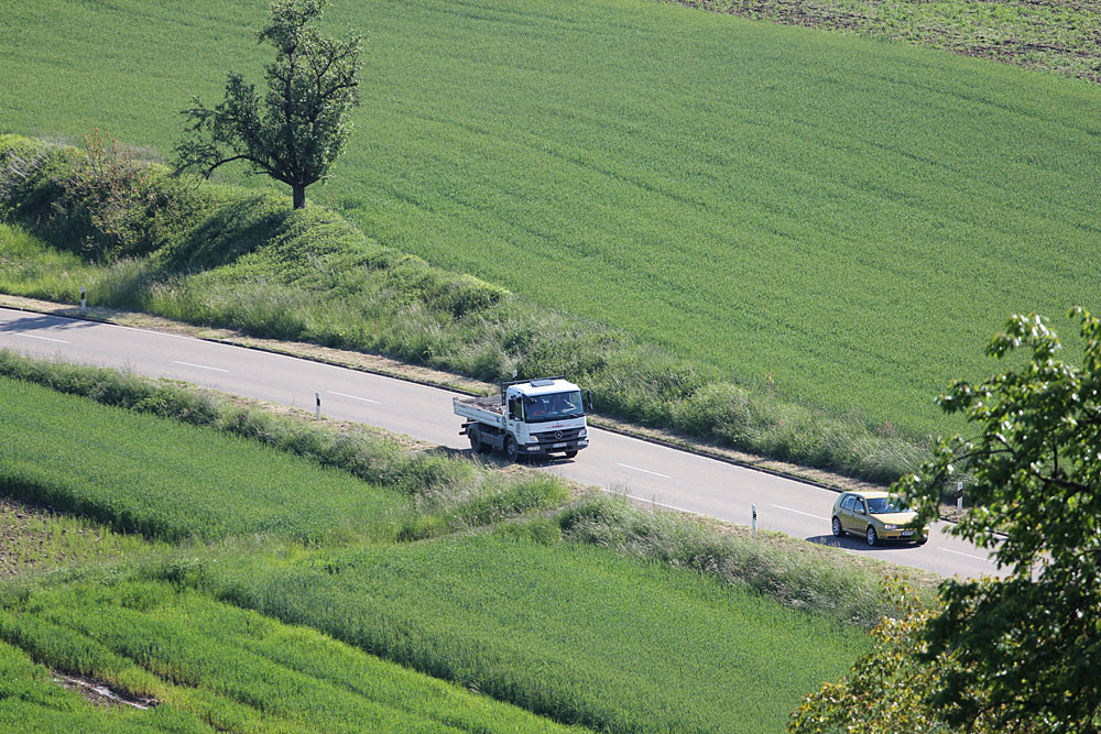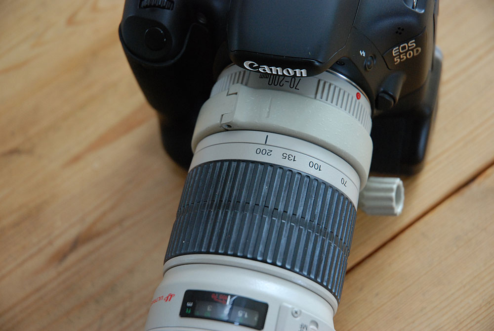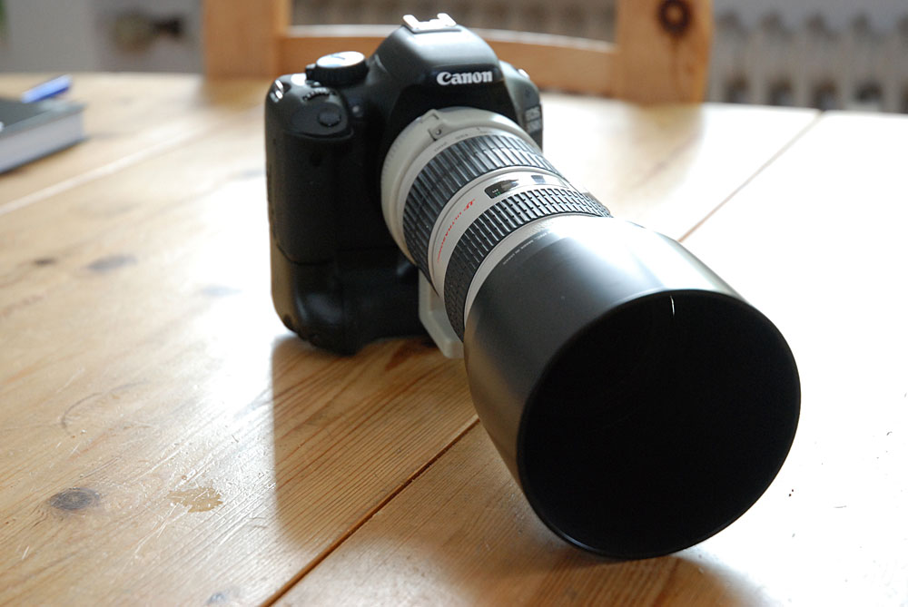Bei den ersten Testaufnahmen war das fehlende IS gar kein Problem: Die Testbilder sind auch ohne IS und Stativ knackscharf, moderne DSLR drehen auf Wunsch gerne automatisch an der ISO-Einstellung. Manche Aufnahmen mit diesem Objektiv erscheinen mir einen Tick zu hell, bzw. heller als mit anderen Objektiven. Die Bildschärfe hervorragend (das Autokennzeichen ist im Original gut lesbar), die Handhabung ist gut: Das Kameragehäuse mit der langen Brennweite ist wegen des Gewichst und des Hebels der Linse besser handhabbar, wenn man den Batteriegriff ansetzt. Dann wird das Gesamtpaket schon ziemlich schwer, liegt dafür aber auch ruhig in der Hand.