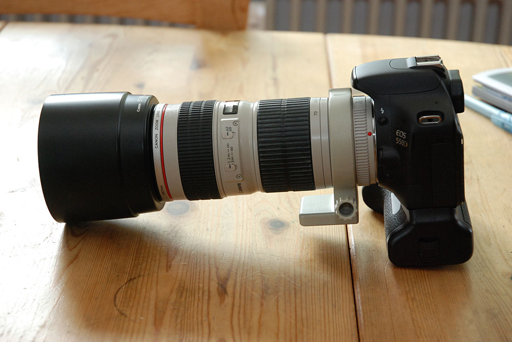 Geht doch: 410 Euro waren die Schmerzgrenze, diesen Nettobetrag kann man in voller Höhe noch im Jahr der Anschaffung abschreiben. Dafür gabs einige zur Wahl. Bei den meisten habe ich den Auktiosschluss verpasst, eines habe ich ergattert. Mein Optimismus reichte durchaus noch aus, auch gleich die Stativschelle dazu zu bestellen. Schließlich muss der fehlende Bildstabilisator ja ausgeglichen werden, am besten durch die Befestigung auf einem Stativ.